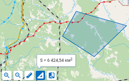 Чтобы измерить площадь следует выполнить аналогичные действия и завершить процесс двукратным нажатием.